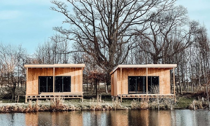 Make the most of the deck with small dining area, each pod has a lakeside view where you can while away a summer evening until the stars come out.