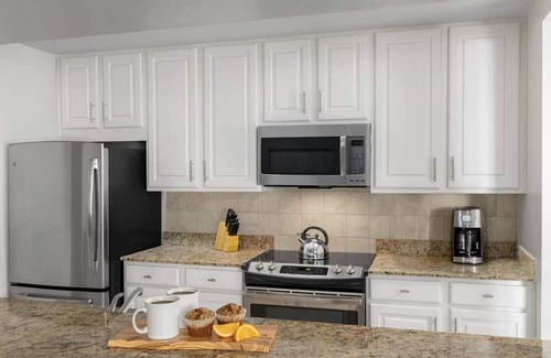 With two full bathrooms, you’ll have plenty of room and privacy, featuring elegant finishes, plush towels, and high-end toiletries. The villa also boasts a fully equipped kitchen with modern appliances, allowing you to prepare meals in the comfort of your own space. Whether you're cooking for the family or entertaining friends, the kitchen provides everything you need, including a refrigerator, microwave, stove, and dishwasher.