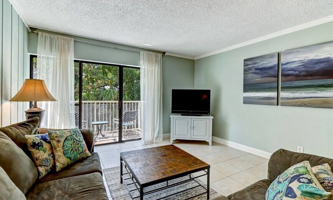 This two-bedroom, two-bathroom villa is perfectly located on the south end of Amelia Island on the ocean side of the Plantation. Guests can enjoy the private balcony, pool, and a three-minute walk to the beach.