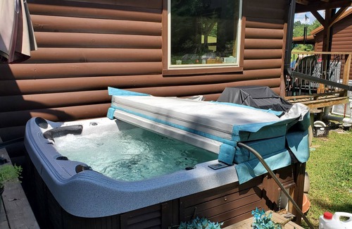 Secondary king suite shares full bathroom with rest of house. Both king suites walk out to sunroom back porch, Hot tub and open sundeck. The loft bedroom has king bed and the 4th bedroom has queen bed with TV and 1/2 bath and seperate covered porch. We have 2 horses that graze our 7 acres. Relax in the enclosed sunroom or sunbath on the open back deck overlooking the rock garden while watching them graze. Not for riding but are very friendly.