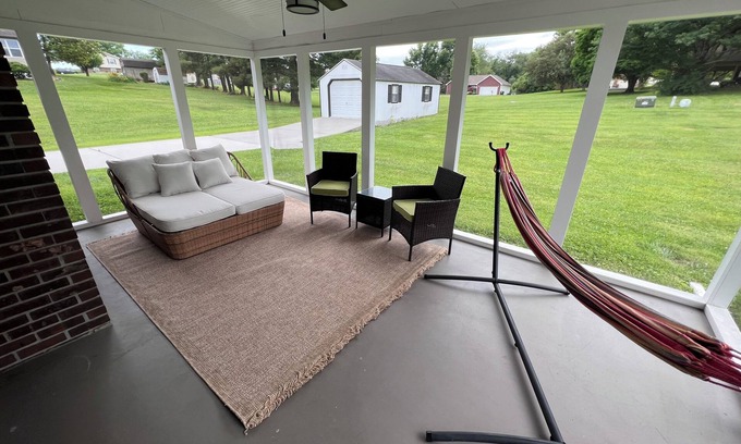 The house has 3 bedrooms 2 bathrooms, a fully stocked kitchen, screened in outdoor patio, living room, office desk, and a dining room. This is a very cozy home to check out all these sites or to have a nice change of pace with extended rentals. Parking available for camper.