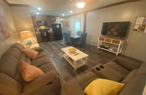 The Bungalows are perfect for fun & rest with all the conveniences of an outdoor paradise! Enjoy FREE access to the Rainbow River via the KP Hole Park boat ramps. Our Community Center offers life size games so you can challenge yourself or friends, make dinner on the grills or roast S'more's by the fire! Take a leisurely walk to the dog area or a siesta in the hammocks. Bungalow U is the ONLY 3 bedroom, 2 bath, family & pet friendly unit with an inviting front deck. 2 night minimum on weekends.