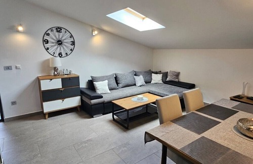 Nice apartment of 65m2 with 2 bedrooms. The first bedroom has 2 single beds that can be joined or separated according to your needs and 1 double bed. The second room has 2 single beds. The cozy living room has a sofa bed where an extra person can sleep. The kitchen is equipped with all the necessary appliances. The bathroom has a shower. Furthermore, you will find a terrace, parking lot for 1 car, barbecue, Wi-Fi, TV/SAT.