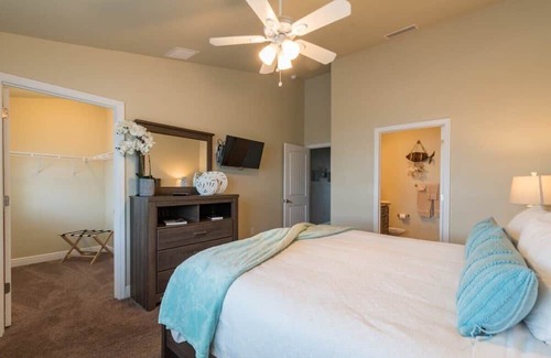 Enjoy the comfort of our two-story townhome featuring three bedrooms upstairs, complete with two full baths, and a convenient half bath downstairs. The open-plan ground floor boasts a fully equipped kitchen, dining, and living area, leading to a patio—perfect for morning coffee. Accommodations include a king bed in the master, twin beds in the second bedroom, a queen in the third, and a queen sleeper sofa in the living room. An attached garage houses laundry facilities for your convenience.