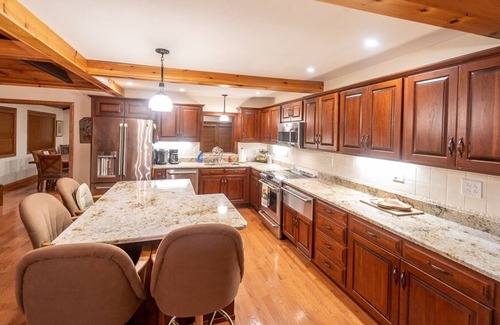 The kitchen is wide open to the rest of the living space, creating the ideal spot to cook a full-course meal for the entire gathering, while still entertaining in the living space. With new modern appliances and tons of seating, both at the dining table & additional bar seats, there is plenty of room for the entire gathering to enjoy.