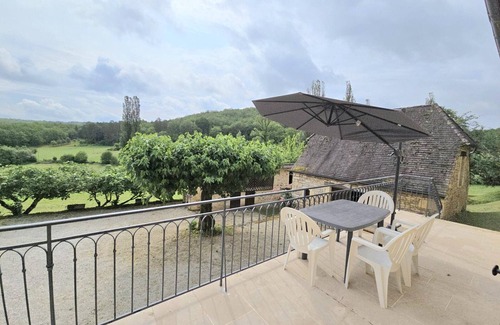 4 km from Montignac (all shops) and 1 km from Aubas (rural multiple with various shops), detached house of 80 m2 in a non-active farmhouse. After 9 outside steps you reach the ground floor to the living room with a living room, kitchen area and lounge with 1 sofa bed in 130. Shower room with WC. Upstairs (17 steps), 2 attic bedrooms: one with a bed in 140 and one with 2 beds in 90 and a baby bed. A WC with a sink. Electric heating. Unfenced land of 1500 m2 with a terrace of 18 m2, garden furniture, sun loungers and barbecue. Towels 7 €/person/change. Sheets 10 €/bed/change. End of stay cleaning 40 €. Electricity over 8 kw/day: 0.18 €/kw extra. Baby equipment: 1 crib, 1 high chair, 1 bathtub. This renovated farmhouse includes the gîte, the stable with its adjoining barbecue, the bakehouse used as a bicycle storage area, and the former unoccupied barn, offering a splendid view of the surrounding countryside, with no overlooked neighbours. The neighbor's farm is 150 m before reaching the gîte, just below the road (this farm is no longer in operation). The country road that runs behind the property leads to a single house located 300 m higher; this path is a hiking trail. The gîte is ideally located for visiting the sites of the Vézère Valley, including the Lascaux 4 International Center for Cave Art in Montignac, the National Museum of Prehistory in Les Eyzies-de-Tayac-les-Bains (30 km away), not to mention a visit to Sarlat, a medieval town with an exceptional heritage, or the Château de Hautefort (Gardens and Museum of Medicine) (25 km away).