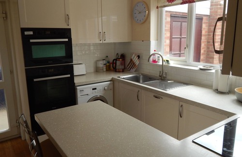 Whole house, sleeps up to 6 people. 2 double and 1 single bedrooms plus sofa bed. Good Wi-fi, TV, newly equipped high quality kitchen, private parking for 3 cars. Large garden with trampoline.