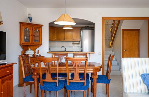 AT309 Mirador: AT309 Mirador: Semi-detached house in the quiet neighbourhood of Els Munts between Torredembarra and Altafulla, just 400m from the beautiful Canyadell creek. The house has a private patio with access to the communal area with lawn and swimming pool. The complex also includes a tennis court at the disposal of the neighbours. On the ground floor of the house there is a living-dining room with an exit to the patio with garden furniture and a portable barbecue, a very well equipped open-plan kitchen (including dishwasher) and a bathroom with shower. On the first floor there are 2 bedrooms, one with a double bed and the other with 2 single beds, and a second bathroom with bathtub. The master bedroom has access to a terrace overlooking the communal area. Going up to the first floor we find a space with 2 bunk beds for 4 people and exit door to another terrace with sea views at the back. The car can be parked inside the courtyard at the entrance to the house. The complex is located 5 minutes walk from Cala Canyadell. We do not accept bookings from groups of young people between 16 and 26 years old.
