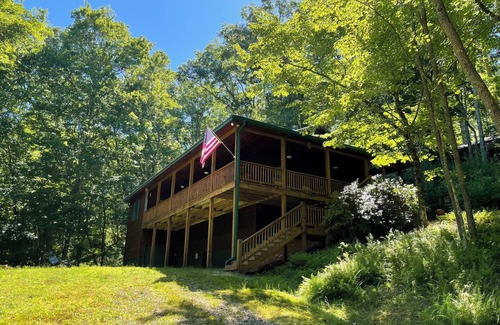 Come visit Deer Hollow in the Aska Adventure Area of Blue Ridge! The cabin is situated on over an acre of land with 130 ft of frontage on Pigeon Creek, which flows to the Toccoa River less than a mile away. The cabin features an open floor plan, dining area, well-equipped kitchen, and new outdoor hot tub. There are two spacious bedrooms with closets and en-suite bathrooms. One closet has an AC vent and is large enough for a pack and play (which we provide, along with w/ extra sheets) so you can turn it into a mini kids room. There are mountain views in the winter and lush forest views in the summer. You will hear the babbling Pigeon Creek and see the whitetail deer from the rocking chairs on wrap around porch. The cabin offers easy access to hiking, fishing, tubing and kayaking. There are beautiful wineries nearby and gem mining for the kiddos. Downtown Blue Ridge is a 25 minute drive where you can check out the excellent shopping, dinning, or ride the Blue Ridge Scenic Railway. The cabin has a cozy feel that will make you feel like it's your home away from home. There's board games, books and a Smart TV. Put a movie on and spend hours relaxing by the warmth of the fireplace. True to its namesake, the cabin offers amazing opportunities to view deer, turkey and hummingbirds from the porch. A perfect place to sit with a good book, cup of coffee or glass of wine. There are also endless outdoor activities in the area- hiking, tubing, kayaking, zip lining, horse back riding, and boating on Lake Blue Ridge!