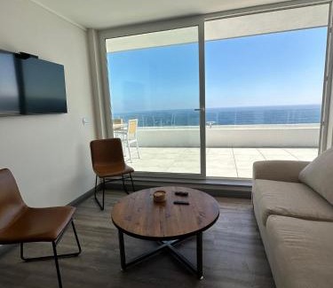 Depto privado con vista despejada al mar en 1 línea, terraza 20 mts y estacionamiento con acceso desde el borde costero | Apartment in Vina del Mar