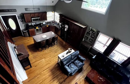 4BR/3BA farmhouse in the heart of the Fingerlakes. Large open floorplan with kitchen and big island that flow to the living room. The living room has a fireplace with TV above and two leather couches to kick back and relax. Glass sliders lead to a large covered-deck and the above-ground pool (open June 15th to September 15th). The deck has a Weber grill, picnic table, deck chairs, and swinging benches that are great for relaxing. The backyard has a firepit with Adirondack chairs.