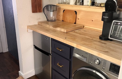 This is comfortable cozy space on the west side of town. There is a single washer/dryer unit, coffee maker, toaster oven. There is no additional sitting area and not meant for cooking meals. There is a shared front gate and fenced in outside space with another unit. Perfect place to get a comfortable good night sleep in between your adventures around Bozeman!