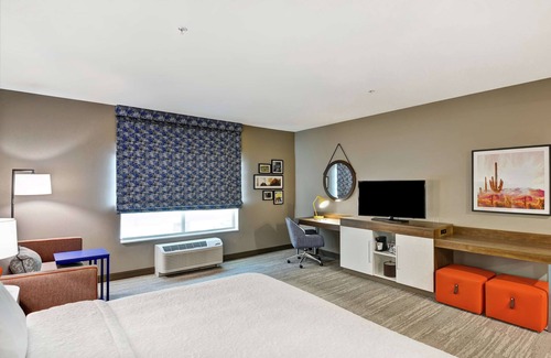 Hampton Inn & Suites Tucson Tech Park offers 104 accommodations with safes and coffee/tea makers. Beds feature premium bedding. 55-inch LCD televisions come with premium cable channels. Bathrooms include bathtubs or showers, complimentary toiletries, and hair dryers.