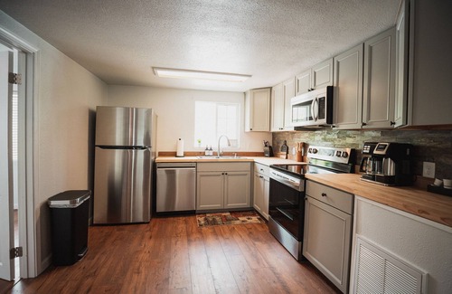 This 3 bedroom 2 bath cabin is the perfect home away from home for up to 6 guests. With new appliances + decor, we envisioned keeping this old home’s original rustic charm with an added modern flair.