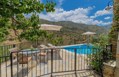 Welcome to our charming retreat in Laroya, a perfect getaway for two! Enjoy stunning mountain views and access to the shared pool open year-round.