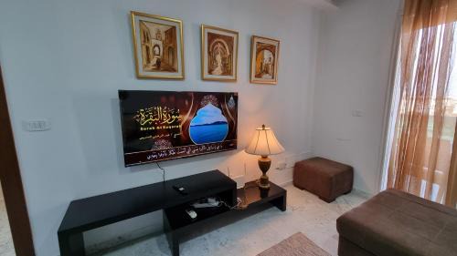 Le confort du lac 2 is located in Tunis, just 3.7 miles from Byrsa Hill and 3.7 miles from The Acropolium Saint Louis Cathedral. The air-conditioned accommodation is 3.3 miles from Salammbo Tophet Archaeological Museum, and guests can benefit from private parking available on site and free Wifi. The accommodation provides an elevator and full-day security for guests. Providing a balcony and garden views, the spacious apartment includes 2 bedrooms, a living room, satellite flat-screen TV, an equipped kitchen, and 2 bathrooms with a bath and a shower. Towels and bed linen are featured in the apartment. The property has an outdoor dining area. Carthage Golf is 3.7 miles from the apartment, while Amphitheater of Carthage is 3.8 miles away. Tunis–Carthage Airport is 1.9 miles from the property.