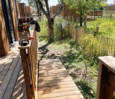 Lodge T4 - Chalet au calme is a recently renovated chalet in La Brée-les-Bains, near Beach of La-Brée-les-Bains. This property offers access to a balcony, free private parking, and free Wifi. Providing a terrace and garden views, the chalet includes 3 bedrooms, a living room, flat-screen TV, an equipped kitchen, and 2 bathrooms with a shower. Guests can take in the ambience of the surroundings from an outdoor dining area. The accommodation is non-smoking. The chalet has a picnic area where you can spend the day outdoors. Fort Boyard is 9.1 miles from the chalet, while Chassiron Lighthouse is 4.2 miles away. La Rochelle - Île de Ré Airport is 58 miles from the property.