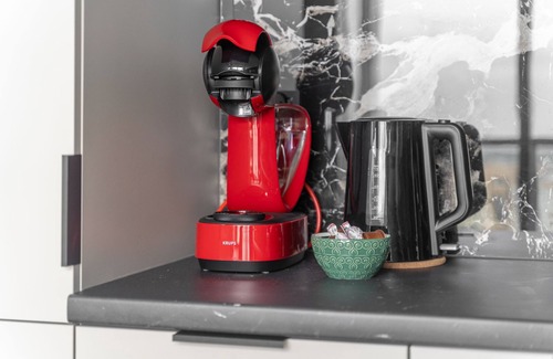 Prepare a home-cooked meal in the kitchenette, complete with a stovetop, a refrigerator, and a dishwasher, as well as an electric kettle, cookware, and a toaster. And you can even travel light because you'll have a washing machine. Other amenities include bed sheets, an ironing board, air conditioning, and heating.
