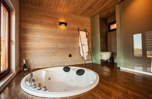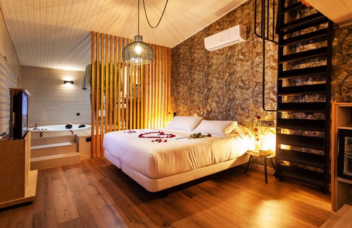 Nidos de Carnota offers 6 air-conditioned accommodations with private hot tubs and fireplaces. Rooms open to furnished balconies. Each accommodation is individually furnished and decorated. Beds feature premium bedding. Smart televisions are featured in guestrooms. Bathrooms include showers with rainfall showerheads, bathrobes, slippers, and hair dryers.