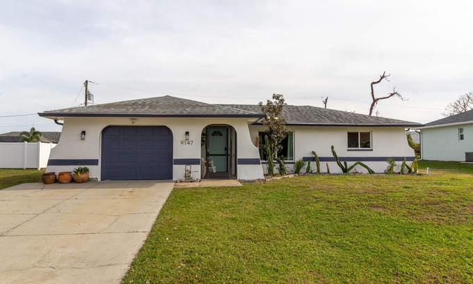 Your home away from home is on a peaceful street in a quiet neighborhood within a 10 minute drive of Englewood Beach with free tennis and pickle ball courts, children's playground. It comfortably sleeps up to 8 guests with a fully furnished kitchen, 2 bathrooms, a lanai, and it is pet friendly! Englewood offers various golf courts, serene nature parks, a year-round heated community pool, kiddy's splash pool, boating, fishing, waterside restaurants for casual and fine dining and so much more.