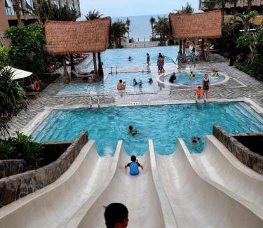Resort Condotel Apec Chambay Mũi Né R2209-Phan Thiết features free bikes, outdoor swimming pool, a garden and terrace in Ấp Thiẹn Ái. With a restaurant, the 5-star hotel has air-conditioned rooms with free WiFi, each with a private bathroom. The hotel provides a sauna and room service. Guest rooms are equipped with a flat-screen TV with satellite channels, stovetop, an electric tea pot, a shower, free toiletries and a closet. The hotel offers a spa center. A variety of activities can be enjoyed on site or nearby, including cycling and water park. Resort Condotel Apec Chambay Mũi Né R2209-Phan Thiết can conveniently provide information at the reception to help guests to get around the area. Long Son Beach is a few steps from the accommodation, while Red Sand Dunes Beach is 1.5 miles away. Lien Khuong Airport is 70 miles from the property.