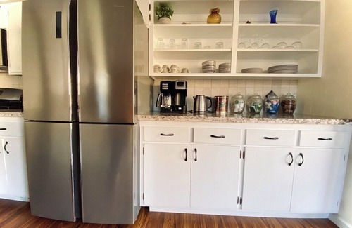 A first class Interior re-model was just completed featuring a fully equipped kitchen with new granite counters, new appliances, floors, comfy furniture with a 65" Smart TV in the living room and a 55" Smart TV in the den. A roomy free flowing interior supports groups of up to eight in 3 beds and 1 sofa bed. Enjoy new linens, new dishes, pots, pans, etc.