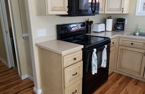 This property is a unique and well appointed floating condo with all updated features. It has two bedrooms, one with a queen bed and the other with a double bed. There is 1.5 bathrooms which share a shower but still retain complete privacy for each bedroom's occupants. The kitchen has all of the features of a modern home such as a full size refrigerator, new stove and microwave. Small appliances include a coffee maker (coffee provided), blender, toaster, electric can opener along with dishes and glasses and more. The kitchen surfaces are solid Corian with indoor dining seating available for 4. All furnishings are very upscale. The art features a local artist, Tom Tiffin, who has captured a very authentic portrayal of a local shrimp fishing boat. The best feature is the large front porch which offers a spectacular views of both sunrises by looking to the right and sunsets on your left. There are always either boats, fish or birds to view from your porch. Today, I saw 2 dolphins swim by. This area includes seating for 6.. The all electric 950 sq. ft. houseboat offers all of the modern systems including an easily controlled air conditioner/heating system It has an aluminum hull and is surrounded by a new floating dock system which makes getting off and on a breeze. A comfortable temperature can be maintained at all times of the year by merely opening the front and back doors to the river breezes. This is indeed a wonderful way to spend a relaxing and comfortable vacation.