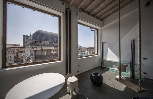 The attic is a pearl set on the top of a seventeenth century tower. With its two large windows overlooking one of the most representative monuments of Brescia, the Loggia Renaissance building now the seat of the municipality. SPIRIT OF THE MOON is the encounter between 'antiquity' and modernity that offers you a privileged point of view to immerse yourself in the atmosphere of our city protected by privacy that only an apartment a stone's throw from the sky can offer. A special place CIR 017029 CIN 00074