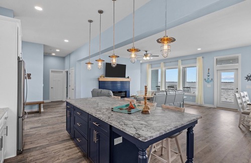 Dip your toes in the water at Straits Serenity! This newly constructed coastal home offers expansive water views from every porch and window. Nature lovers will relish the variety of marine life, including egrets, pelicans, dolphins, and boaters. The contemporary design features a modern kitchen and spacious living area with a fresh, open feel, perfect for fostering conversations and easy movement among guests.
