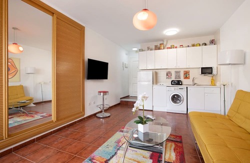 The studio apartment "Lahola" in Torremolinos is the perfect accommodation for a stress-free stay with your loved ones. The 45 m² property consists of a living/sleeping area, a fully-equipped kitchen, and 1 bathroom, and can accommodate 4 people. On-site amenities include high-speed Wi-Fi (suitable for video calls), a smart TV with streaming services, air conditioning, a fan, and a washing machine. A baby cot can also be provided.