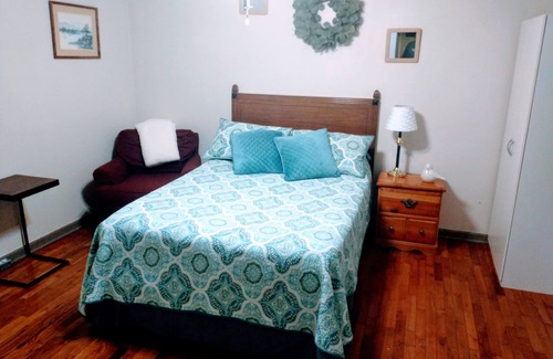 Cozy studio apartment on a quiet street close to active down town and backs up to our river walk/bike trail. Hospital and colleges are within a stones throw. Bus stop on corner. Guests have their own space with large covered porch,parking (off street), private entrance. Includes full bath, WiFi, cable, kitchenette with microwave, Television,coffee maker,utensils,linens,heat/air. No smoking!