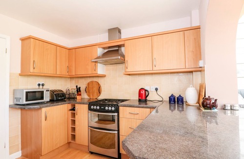 Amenities: Gas central heating with electric fire. Gas oven and gas hob, microwave, fridge/freezer, dishwasher, washing machine, tumble dryer. Smart TV and WiFi. Fuel and power inc. in rent. Bed linen and towels inc. in rent. Laundry facilities. Ample off-road parking. Enclosed lawned garden patio with furniture and barbecue. Lockable garage for bike storage. One small well-behaved pet welcome. Sorry, no smoking. Shop and pub 0.7 miles, beach 0.3 miles. Note: Stairs are steep and care should be taken. Not suitable for children under the age of 10. Note: Twin bedroom is not suitable for those with limited mobility. Note: Low light on staircase, please take care when using in the night