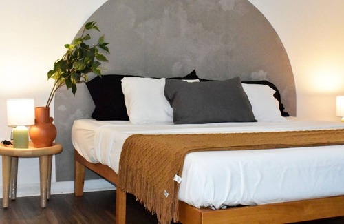 Serene Room: This room with a canopy queen bed gives you the sense of peace and serenity. The pink and white tones of this room are gentle to the eye and your sense of touch will be engaged by the stark difference between the firm metal frame to the soft, textured blanket. Flip the hourglass and hear the slow flow of the beads as time passes by. Cuddle in and forget all your worries - this is a vacation after all!