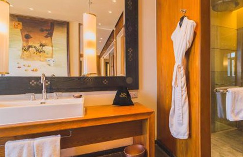 The St. Regis Lhasa Resort offers 196 accommodations with DVD players and minibars. Accommodations offer separate sitting areas. Beds feature premium bedding. 42-inch LCD televisions come with premium cable channels and pay movies. Bathrooms include separate bathtubs and showers with deep soaking bathtubs, bathrobes, slippers, and designer toiletries.