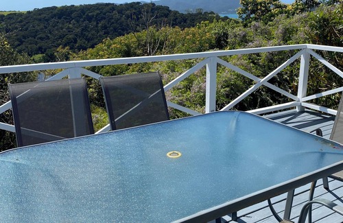 Nestled in the hills of Cable Bay is Tui's Peak. This nicely perched house has a view through the gorgeous treetops out to Coopers Beach .You can wake up to this view from the master bedroom with a second double at the back of this lil cutie. The living space is calm and relaxing with a little spot on the window seat to read a book or just enjoy the view. Step out onto the large deck and enjoy a small gathering over a glass of wine in the sun . This property is a peaceful oasis with just what need to create a meal or a cuppa in that reading nock. Perfect hideaway too runaway to for that well deserved break.