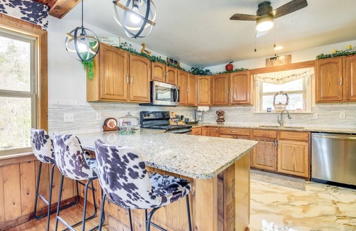 Partake in a peaceful retreat at this 2-bedroom, 2.5-bathroom vacation rental in scenic Dandridge! The cabin is perfect for families — boasting features like 2 Smart TVs, in-unit laundry, a fully equipped kitchen, and a game room! Bring your boat along and spend your day on the water, or venture out to visit popular attractions in the Pigeon Forge and Gatlinburg areas. Once you've had your fill of exploring, return to your home away from home and gather around the fire pit under starry skies.